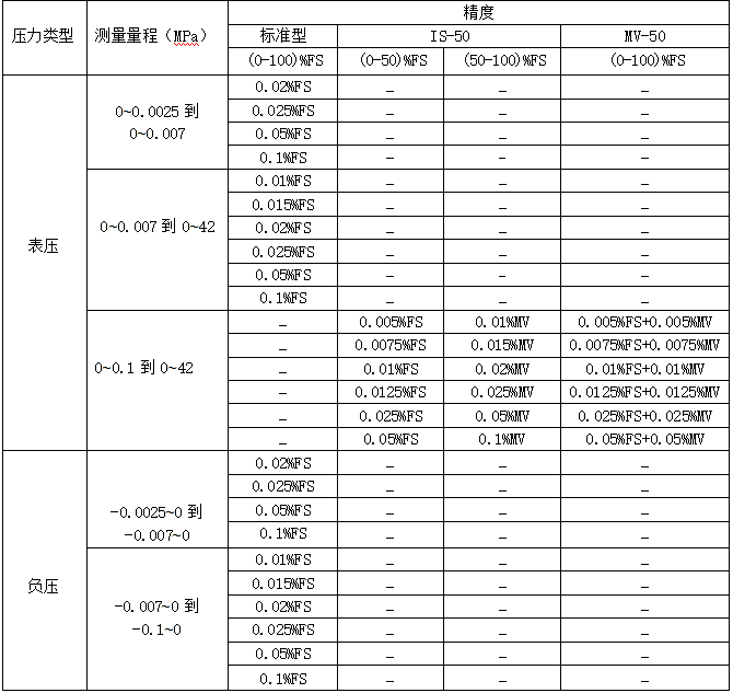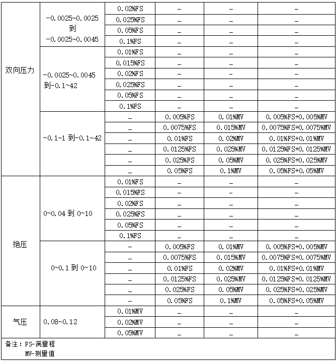(6) 測(cè)量壓力類型有表壓、絕壓及雙向壓力