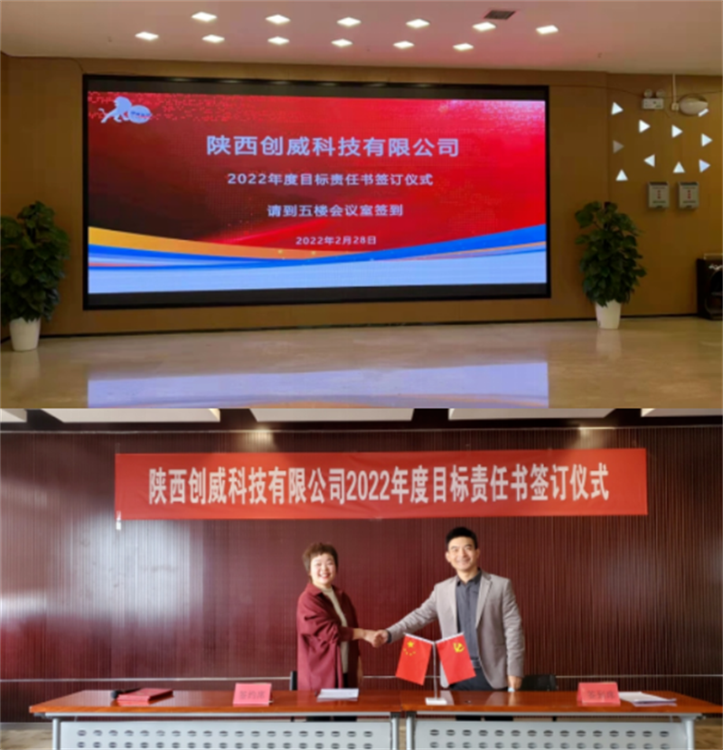 在新年開啟之初,創(chuàng)威科技確立了新的增長目標(biāo),2月28日,2022年度目標(biāo)責(zé)任書簽訂儀式在航天基地航創(chuàng)廣場(chǎng)5樓隆重舉行,確定了全年任務(wù)年度增長20%的目標(biāo),為全年工作開展奠定了總的奮斗基調(diào)!